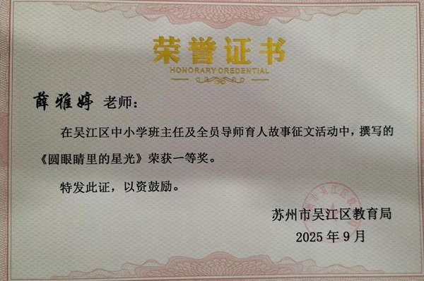 莘塔小学老师在吴江区中小学班主任及全员导师育人故事征文活动中