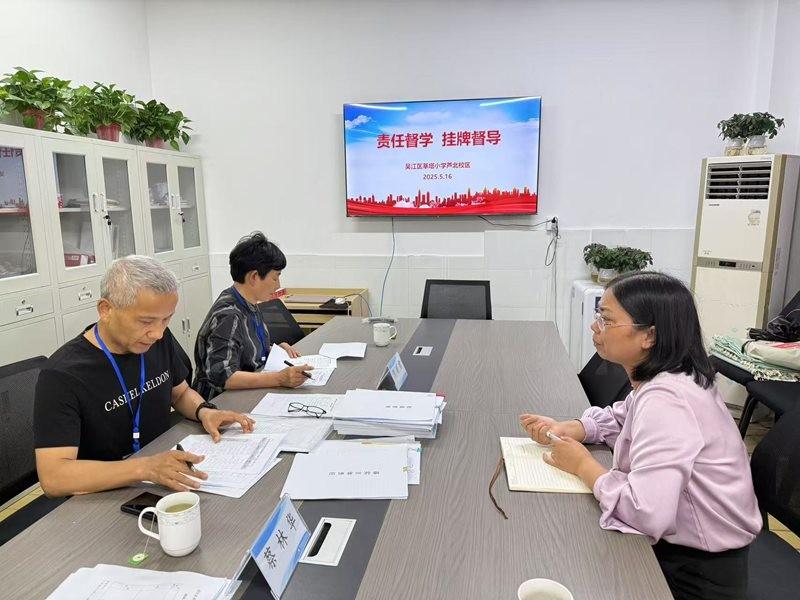 2025年5月16日下午,吴江区第十三责任区督学蔡林华和陈丽君对莘塔小学芦北校区进行1+X挂牌督查.