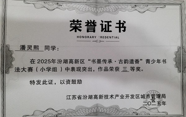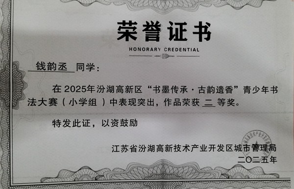 莘塔小学两位学生在2025年汾湖高新区“书墨传承.古韵遗香”青少年书法大赛(小学组)中获奖