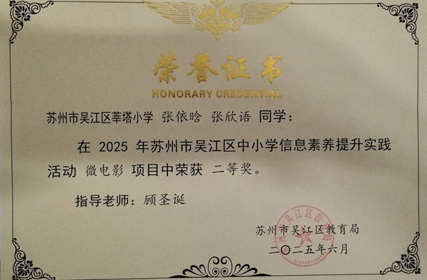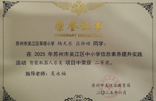 莘塔小学学生在2025年苏州市吴江区中小学信息素养提升实践活动中获奖汇总