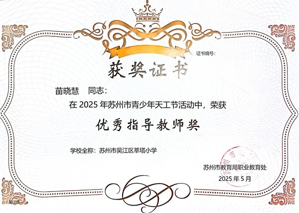 莘塔小学师生在2025年苏州市青少年天工节活动中获奖汇总